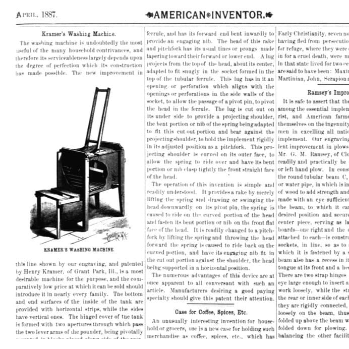American Inventor reported on innovations in agriculture, building, mechanics, household management, infrastructure, transportation, electricity, and communications—detailing inventions from America and around the world.